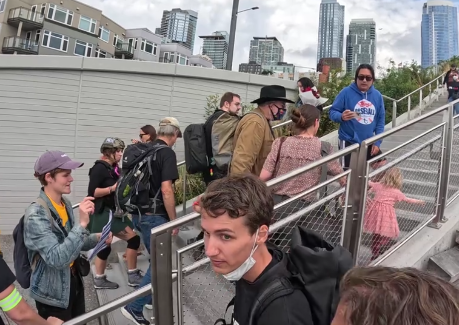As tourists approached the waterfront’s overlook to witness what may have been their first Seattle rally, Brown spoke about her upbringing and how her mother was a nurse and single mom, whom she describes as among the hardest-working women on the planet. As a teenager, she took on more responsibility to lessen the load on her mother, and hopped on birth control that helped with painful periods. She felt empowered through bodily education and said that basic women’s healthcare rights cannot be rolled back.