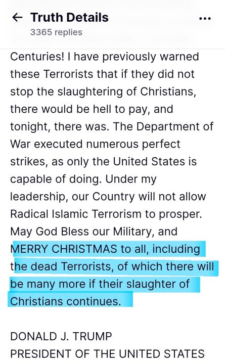 On Christmas Day, Trump posted to Truth Social and stated that the Department of War launched numerous airstrikes against “ISIS Terrorist Scum in Northwest Nigeria,” due to killing Christians.