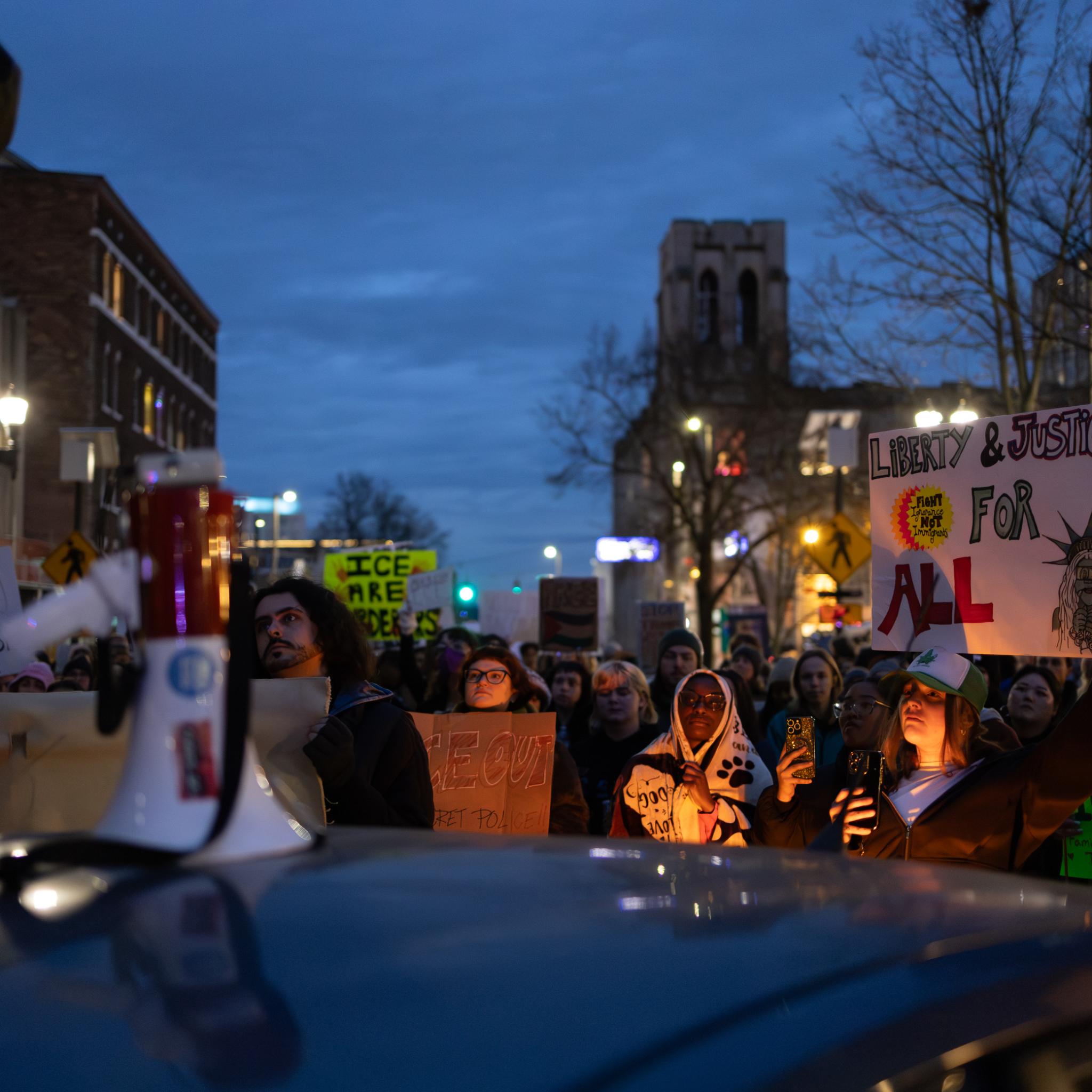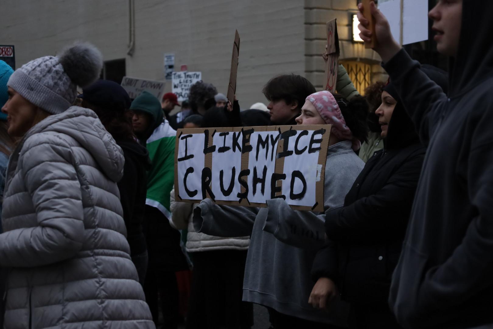 Protesters took to the streets of Tacoma on January 27 to demand that ICE be kicked out of the city. While a crowd rallied outside of the city council chambers, holding signs that said “STOP THE DEPORTATIONS!” and “INSERT MAGA FASCISTS HERE” with a picture of a guillotine, community members provided testimony on the inside during the community forum portion of the council meeting.