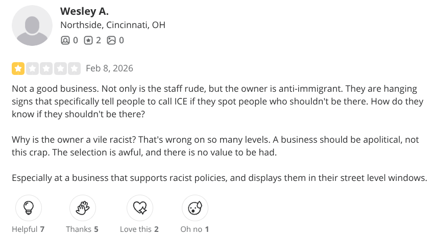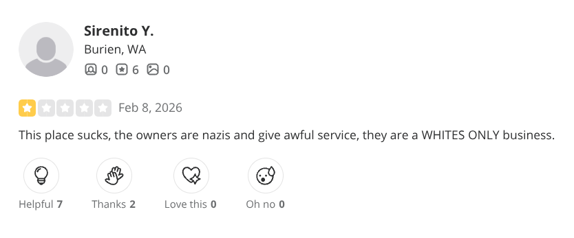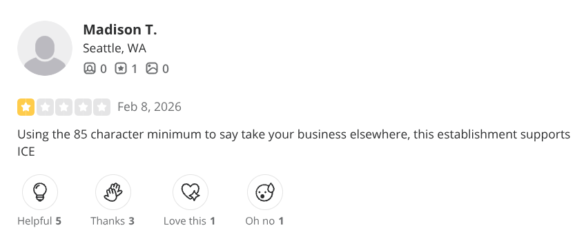 On February 7, a community member spotted a sign in Ballard Industrial’s window: “Help your country… and yourself… REPORT ALL FOREIGN INVADERS,” with ICE’s hotline number below. And the marine part and equipment supplier has been feeling the effects of antifascism in Seattle— spreading awareness and leaving negative reviews.