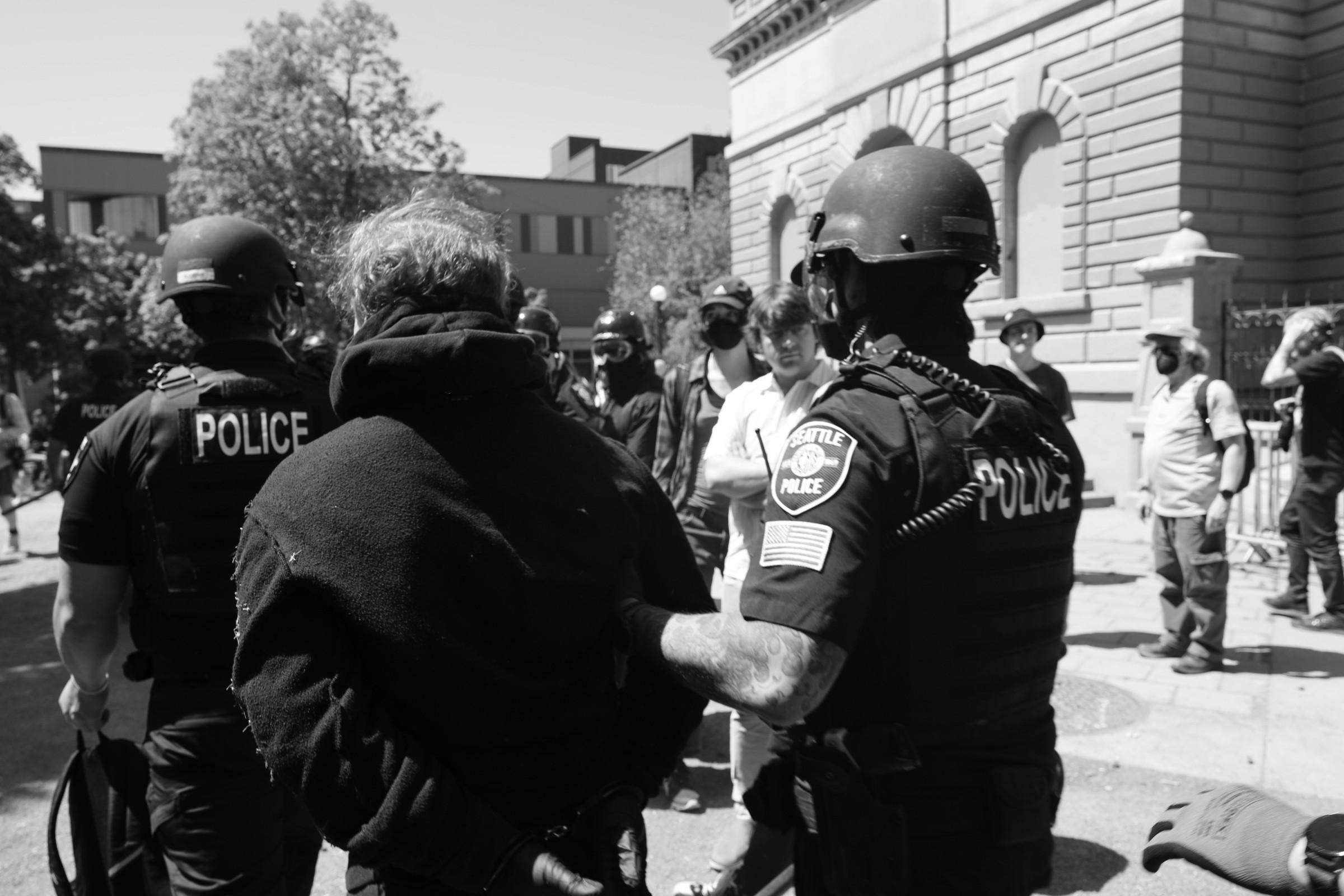 The act that kicked off SPD violence was when a small group of protesters released three balloons that MayDayUSA set up throughout the park, including on trees. Didier immediately responded by ordering an arrest for property destruction, but officers lost the suspect in the crowd.