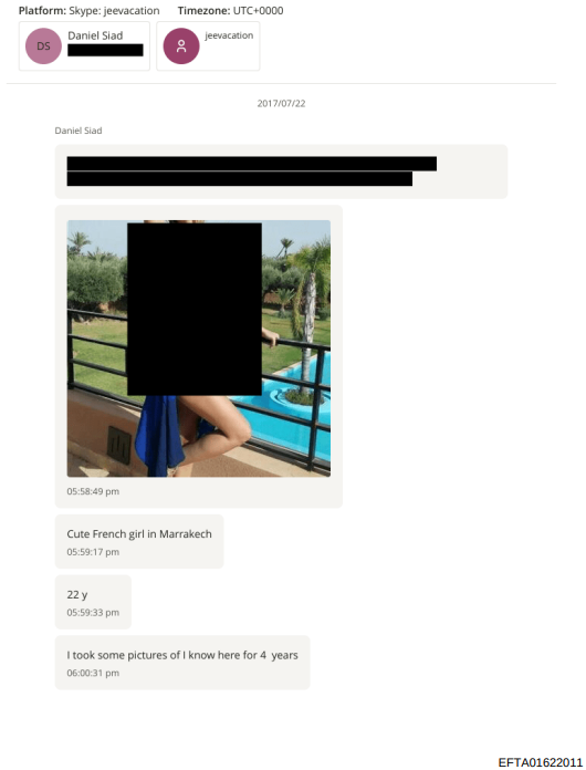 From at least 2010 to 2018, Siad Skype messaged Epstein on numerous occasions, discussing different models, their ages and bodies, and shared photographs. In one email dated January 21, 2010, with the subject line “here are the links the best of the best is [redacted],” that included a list of models from United Models. Another Skype message from October of 2015 shows Epstein asking about a Hungarian model that Siad was still in touch with, and added that he was actively scouting in Eastern Europe, including in Estonia and Lithuania.