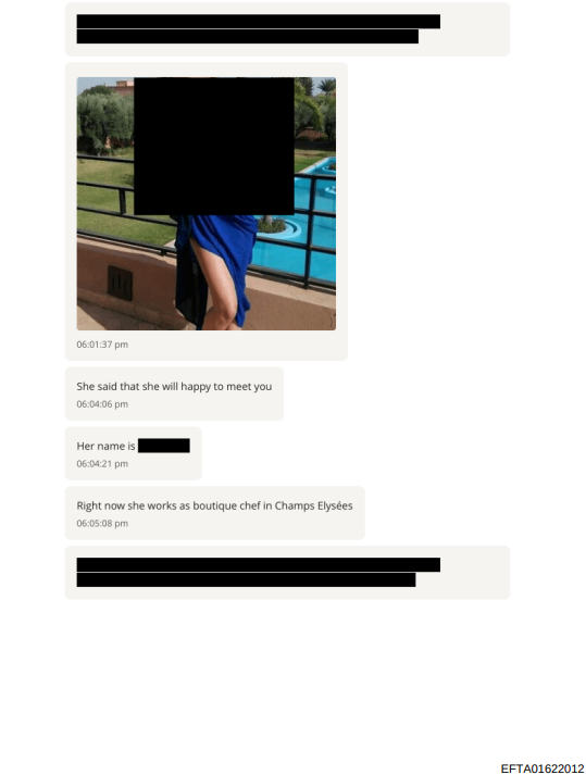 By August that year, Siad wrote Epstein about a French Vietnamese model who was looking for other modeling opportunities as a student. In May of 2018, Siad told Epstein that he met a French Brazilian woman he would organize a meeting with.