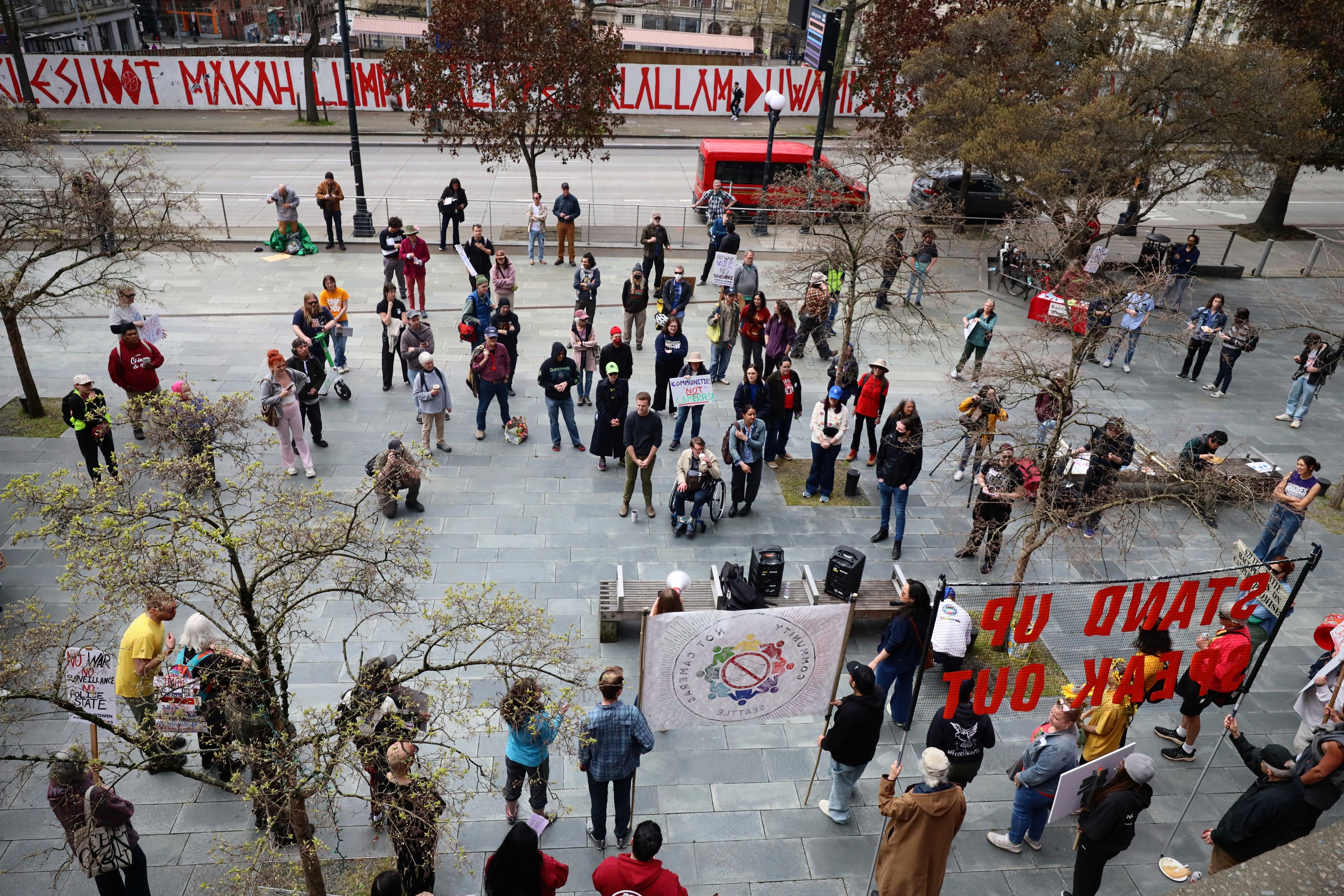The Seattle Police Officers Guild (SPOG) is pressing Mayor Katie Wilson for an increase in surveillance resources, despite the fact that 20 CCTV cameras are set to be installed in the Stadium District ahead of the World Cup this June. For months, community members and leftist activists have been expressing the harm surveillance inflicts on vulnerable communities with hopes of getting the mayor to turn them off completely.