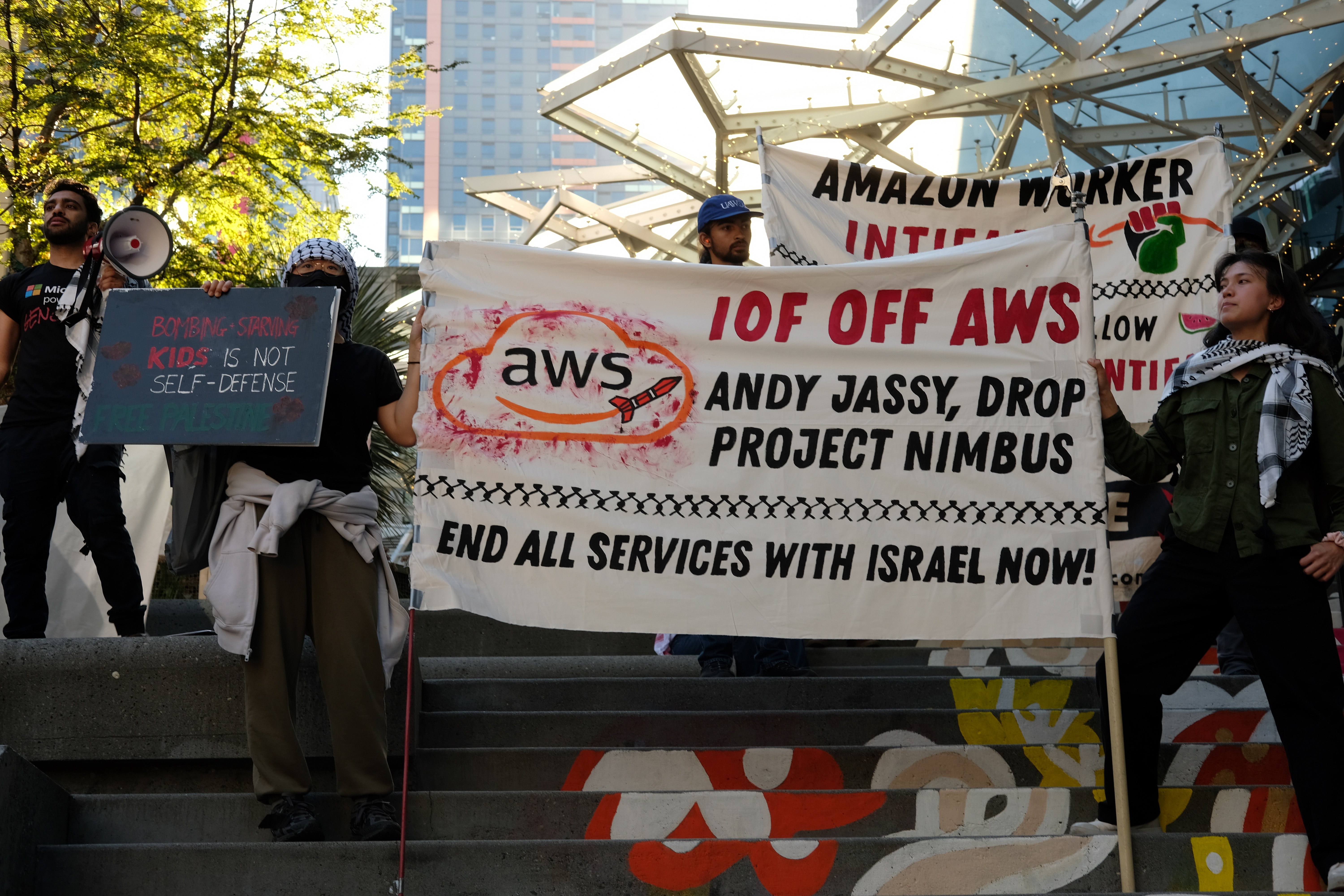 We will not stop. We will not be silenced. And we will not let Amazon hide behind legal technicalities while our siblings are bombed and murdered in Palestine, Lebanon, and Iran. Amazon has a choice, it can honor its ethical duty to humanity and open the door for investigation and justice, or it can remain a partner in genocide and occupation. We’re taking the company back — one resolution, one protest, one worker at a time.